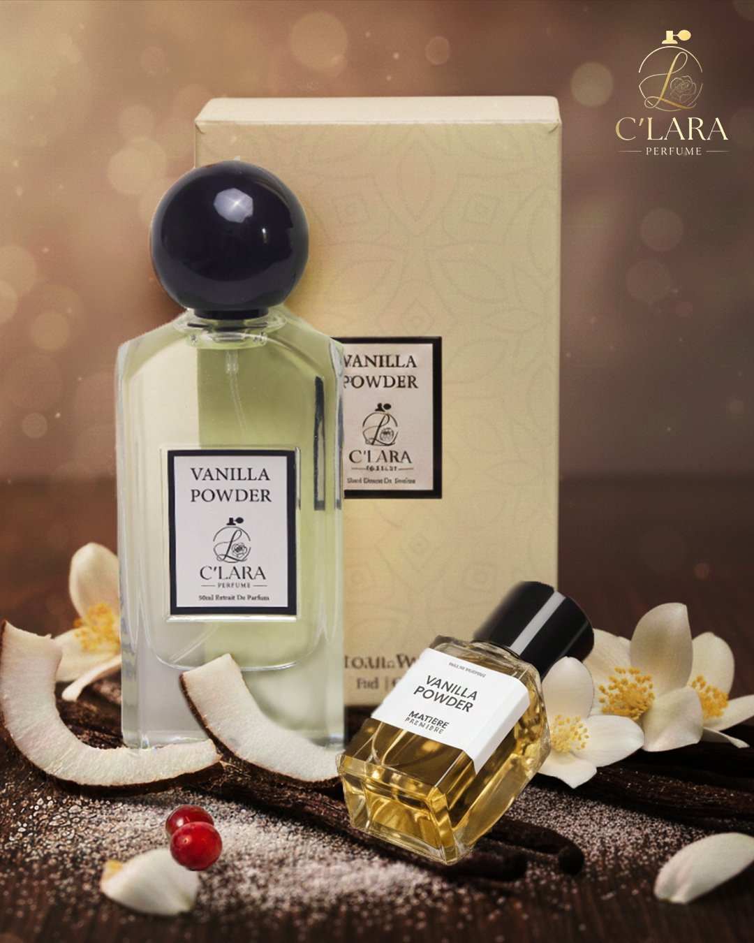 Vanilla Powder Matiere Premiere عطر للجنسين. Vanilla Powder صدر عام 2023. Aurélien Guichard قام بتوقيع هذا العطر. افتتاحية العطر بودرة جوز الهند و الهيلوتروب; قلب العطر فانيليا مدغشقر; قاعدة العطر تتكون من الفانيليا, المسك الأبيض, المسك, بالو سانتو, لاكتونات و جوز الهند.